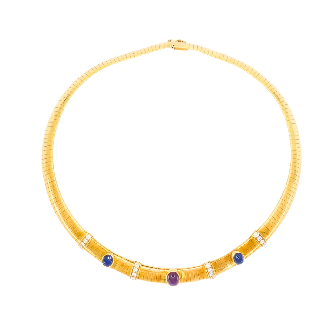 Vintage Van Cleef & Arpels 18k Gold Collar Necklace Sapphires Ruby Diamonds