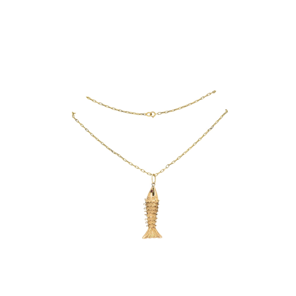 Vintage 14k Gold Fish Pendant 18k Gold Chain Necklace