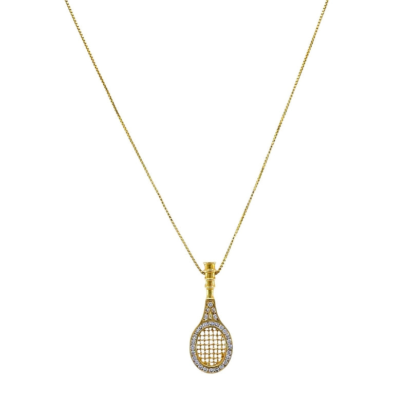 14k Gold Diamond Tennis Racket Pendant Necklace