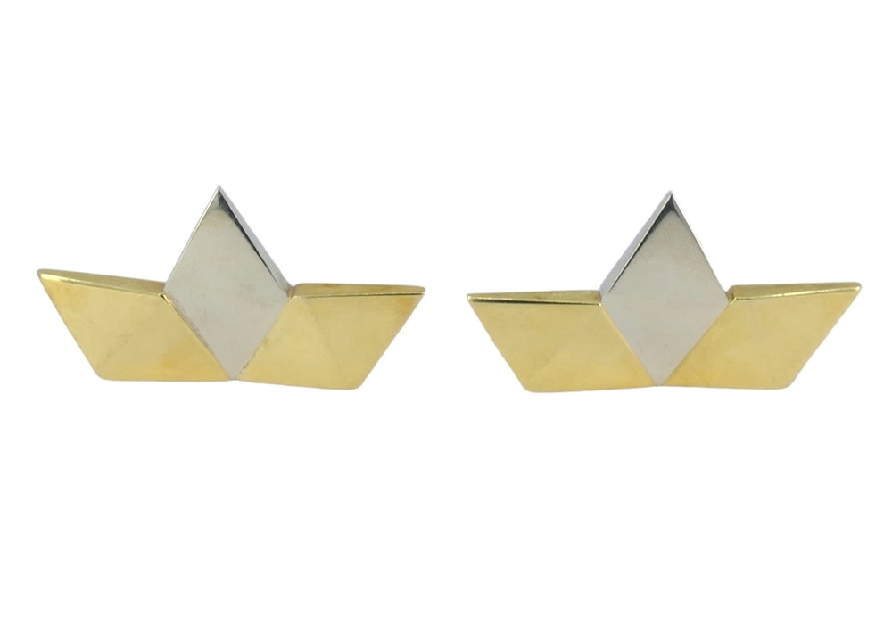 Vintage Gucci 18k White and Yellow Gold Geometric Earrings