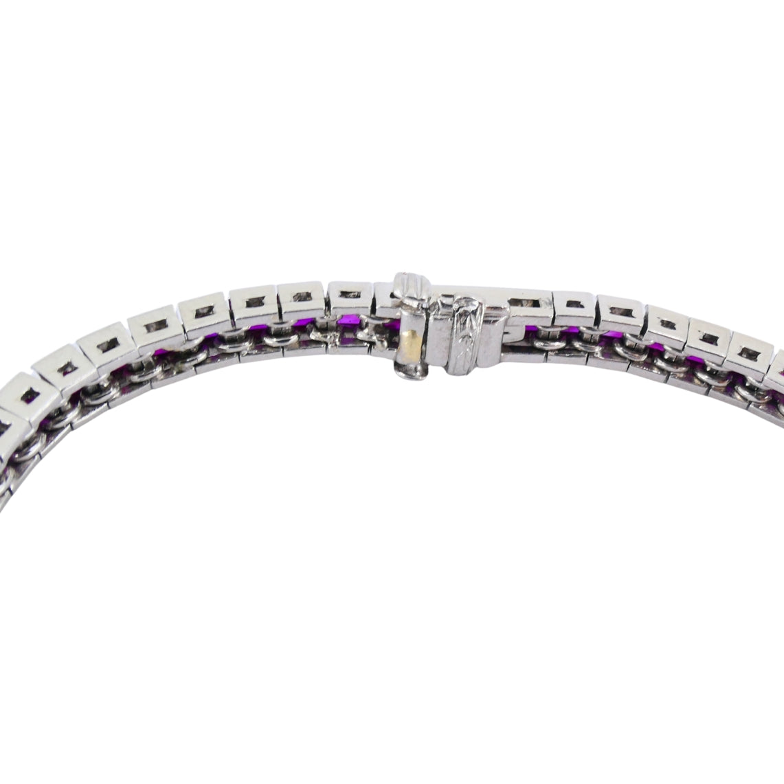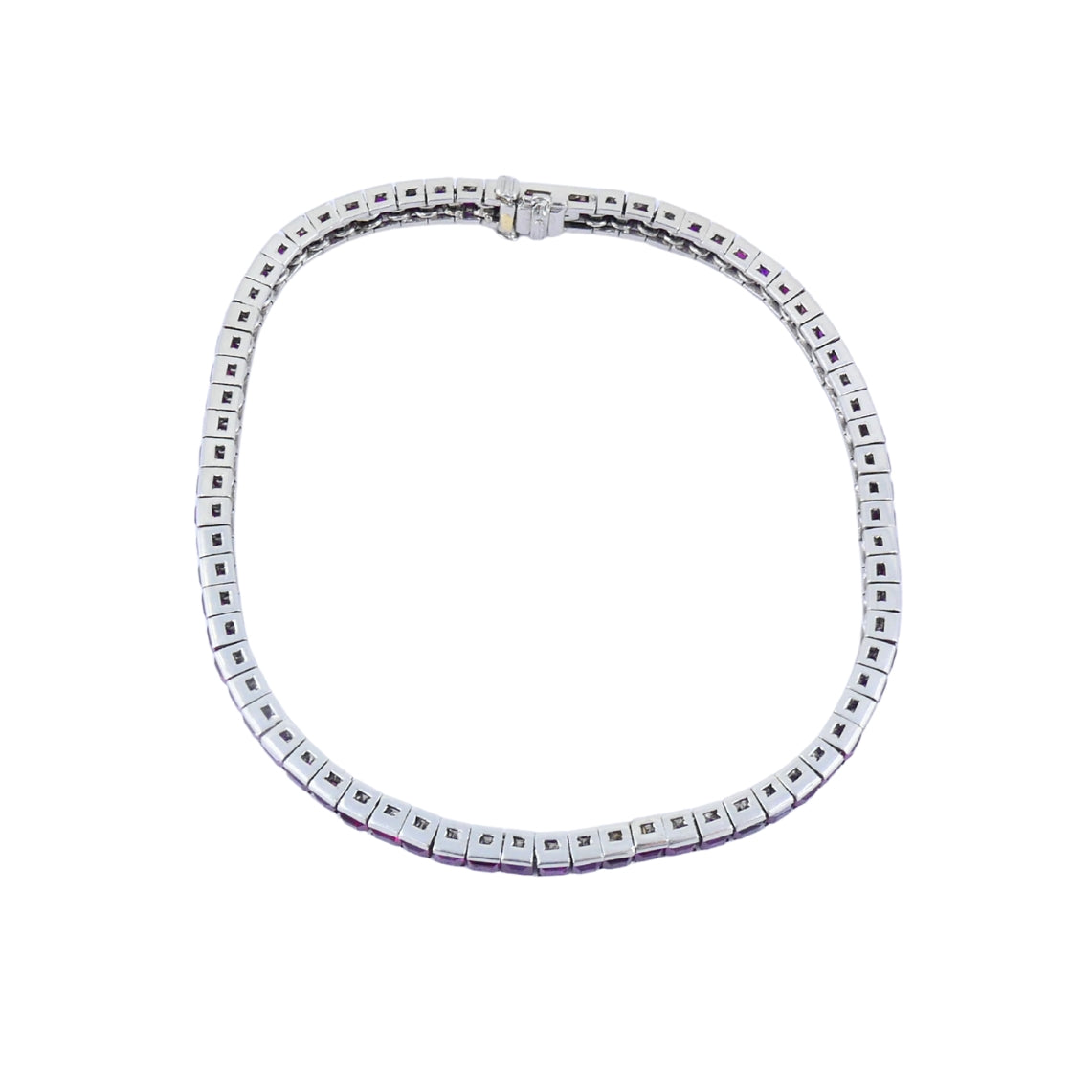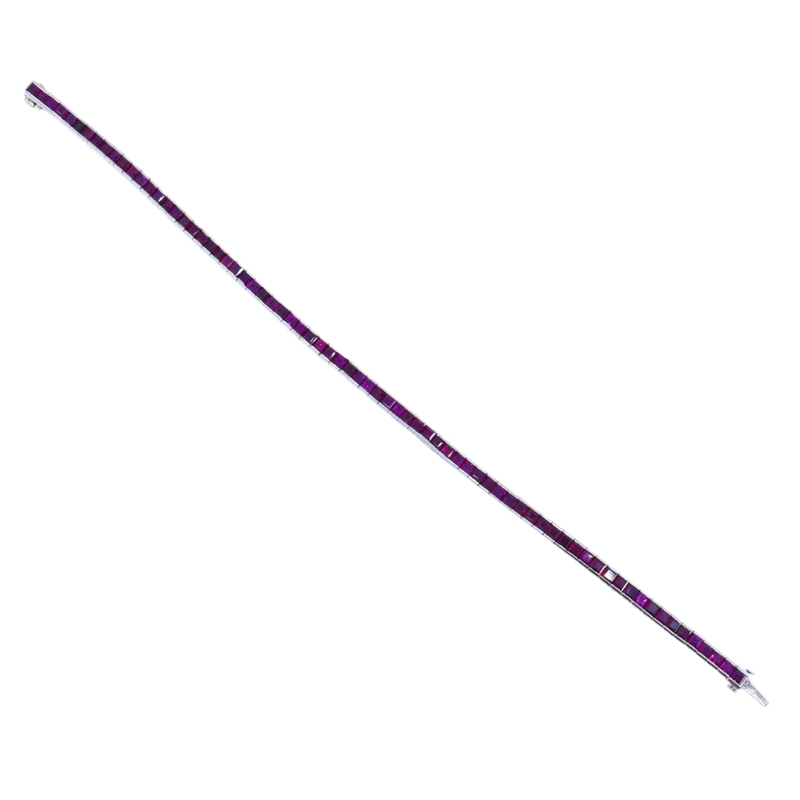 The bracelet features a continuous line of square-cut rubies, each set in an individual box-style link.