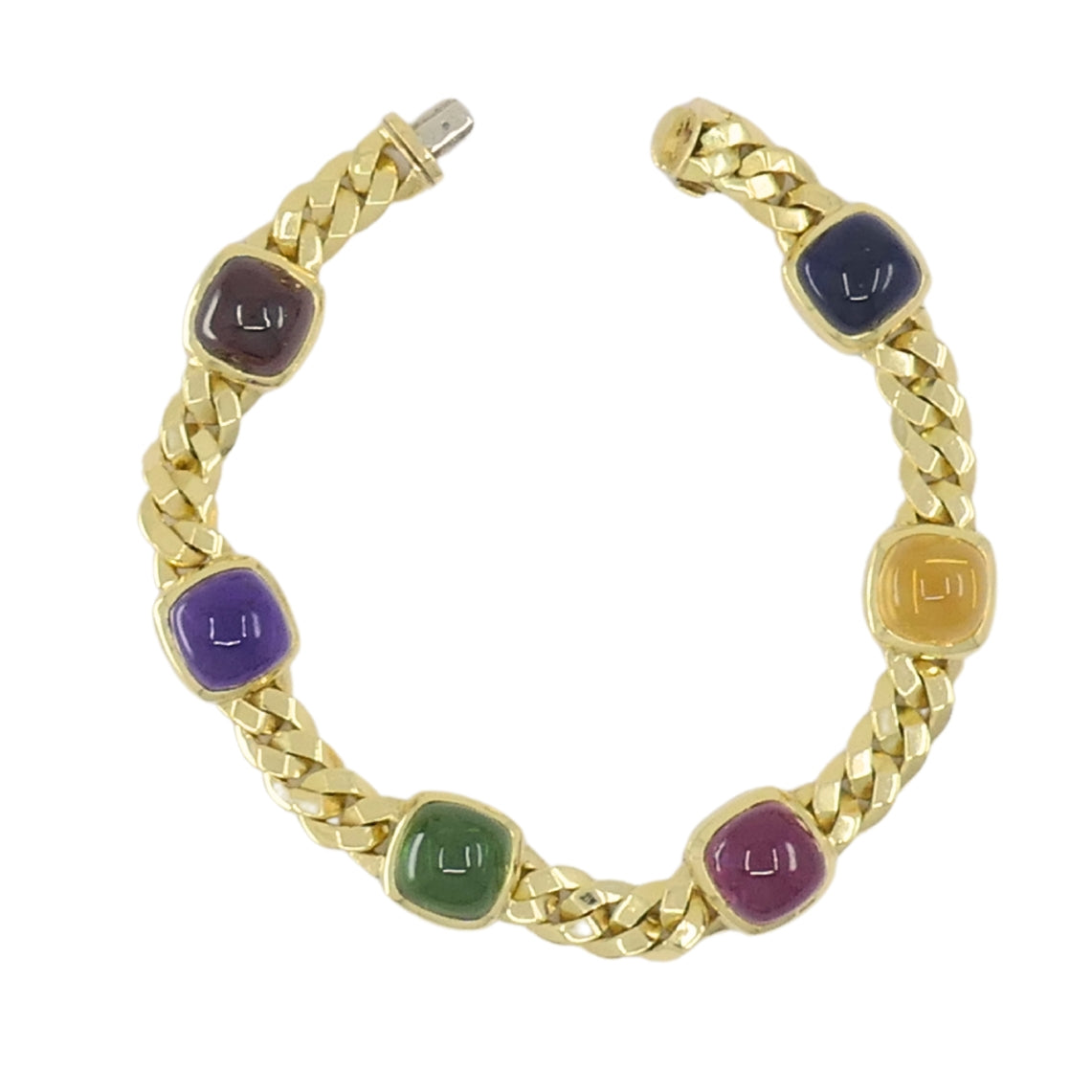 Vintage Bvlgari Bulgari Bracelet Gold Sugarloaf Gemstones