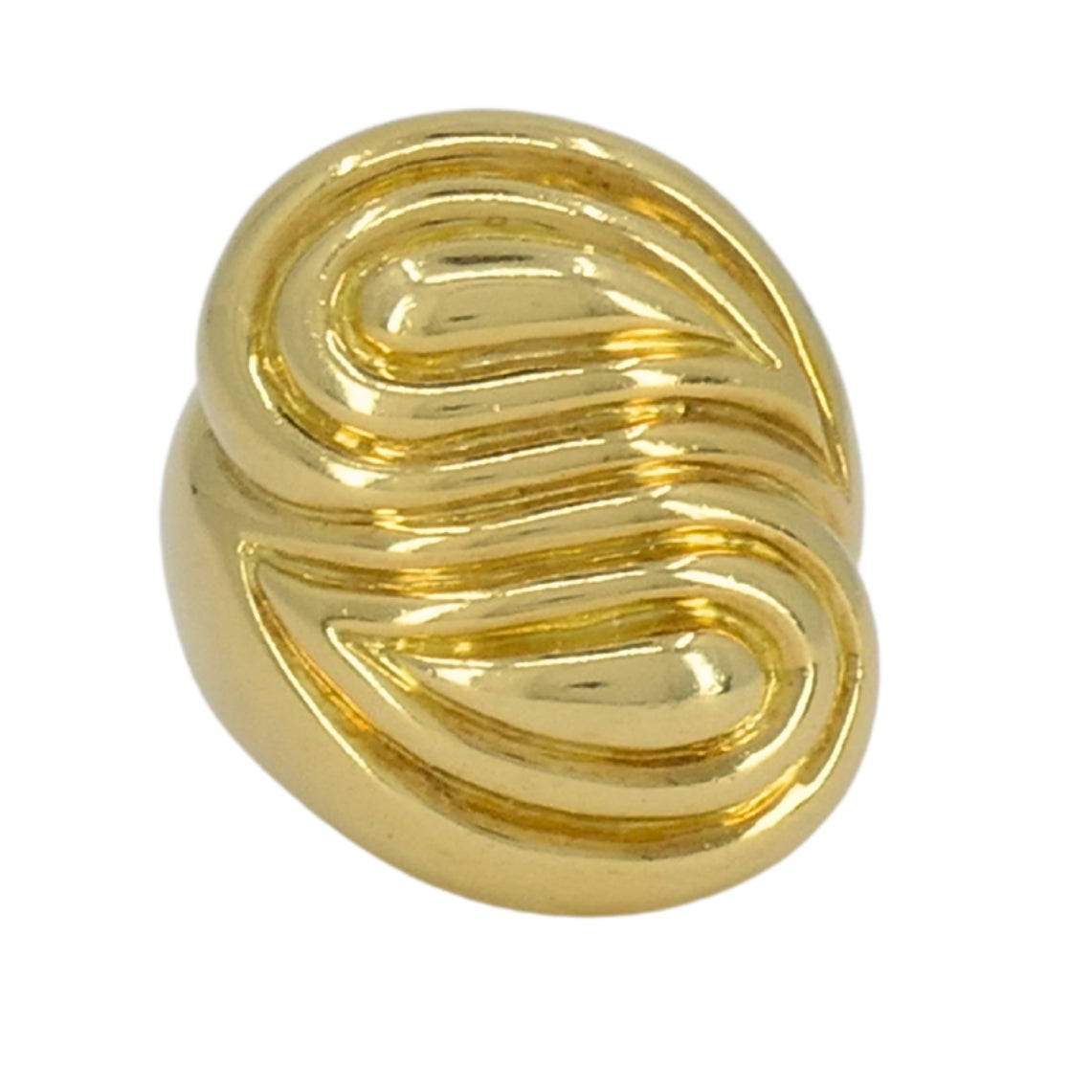 As a cocktail ring, it has substantial weight and a wide profile that sits confidently on the finger. While many chunky rings rely on size alone, this piece uses sculptural form to create impact. It’s a massive gold ring, yet its smooth lines keep it wearable for both casual and dressier looks. This vintage David Webb ring is a bold, sculpted 18k gold ring designed with the dramatic volume the house is known for.