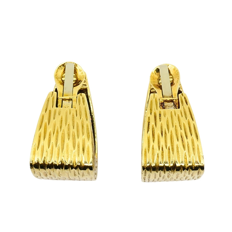 These bold statement earrings from Wander France exemplify mid-century modern design with their  geometric patterning and elegant textured crafted in 18 karat gold. Crafted in France circa 1960s, each earring features an architectural silhouette that enhances the distinctive surface motifs. Fitted with secure omega clip backs, these earrings ensure comfortable wear and are ideal for non-pierced ears. Each piece is stamped with the Wander France hallmark, confirming authenticity and exceptional French craftsmanship. Measurements are approximately width 11/16", length 1 5/16", and depth 1", offering a striking and wearable profile suitable for both daytime and evening looks.