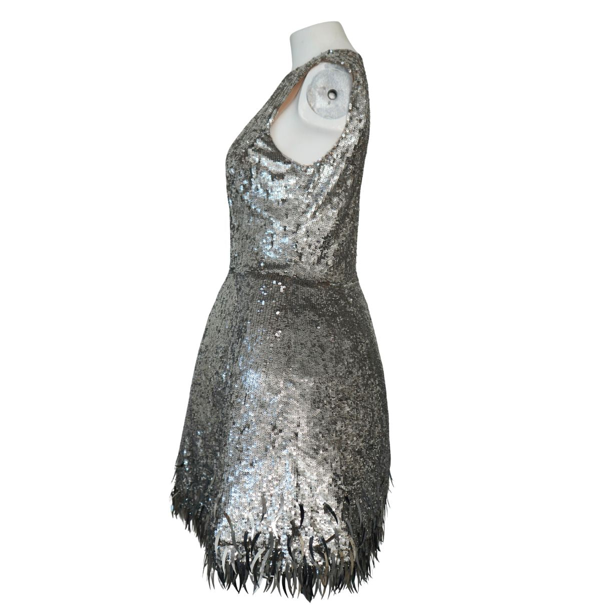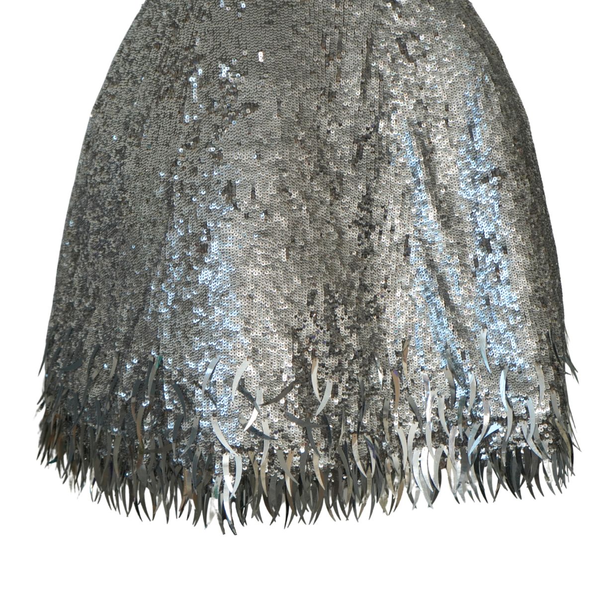 Oscar de la Renta Silver Sequined Fringe Mini Dress