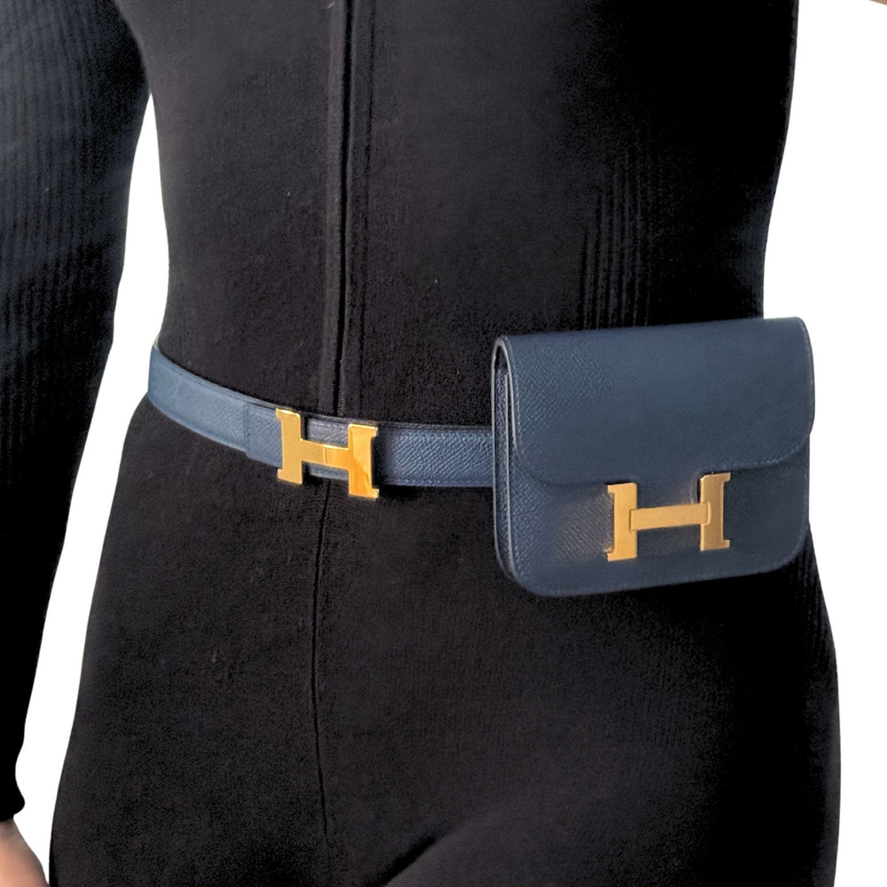 Hermès Constance Belted Wallet in Blue Evercolor Leather with Silk Twilly