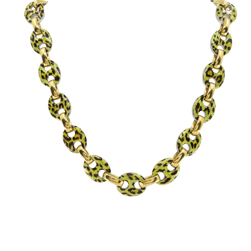 Nicolis Cola for Nardi 18k Gold, Metal Leopard Enamel Nautical Link Necklace