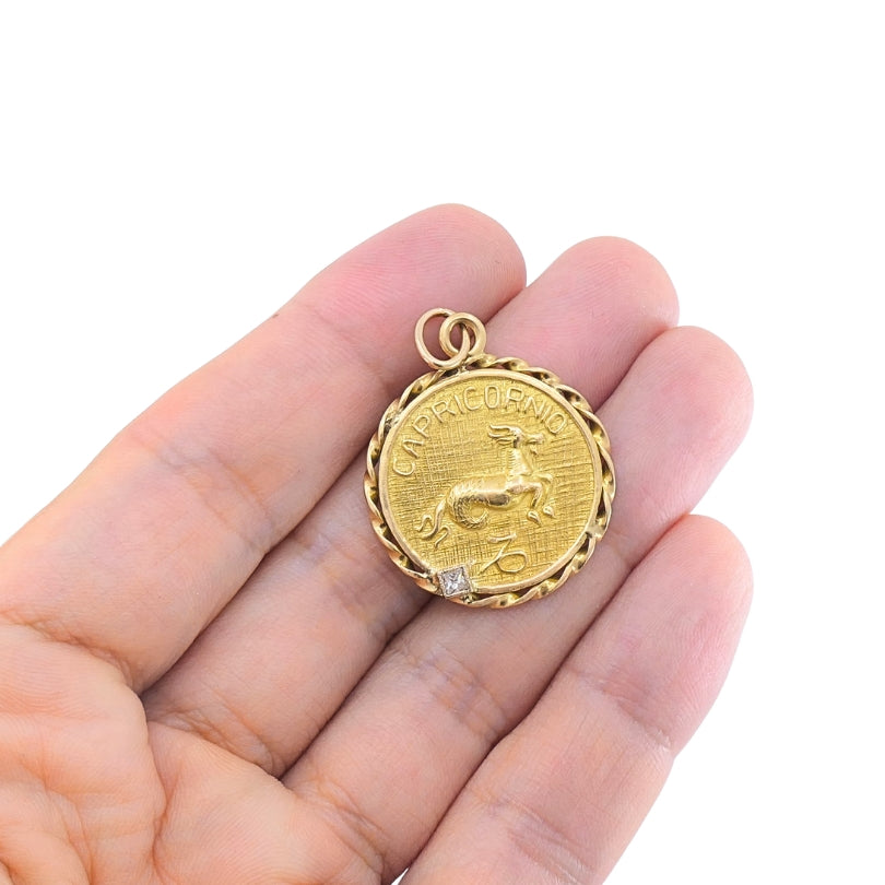 Vintage 18k Gold Reversible Capricorn Pisces Zodiac Pendant Diamond Accent