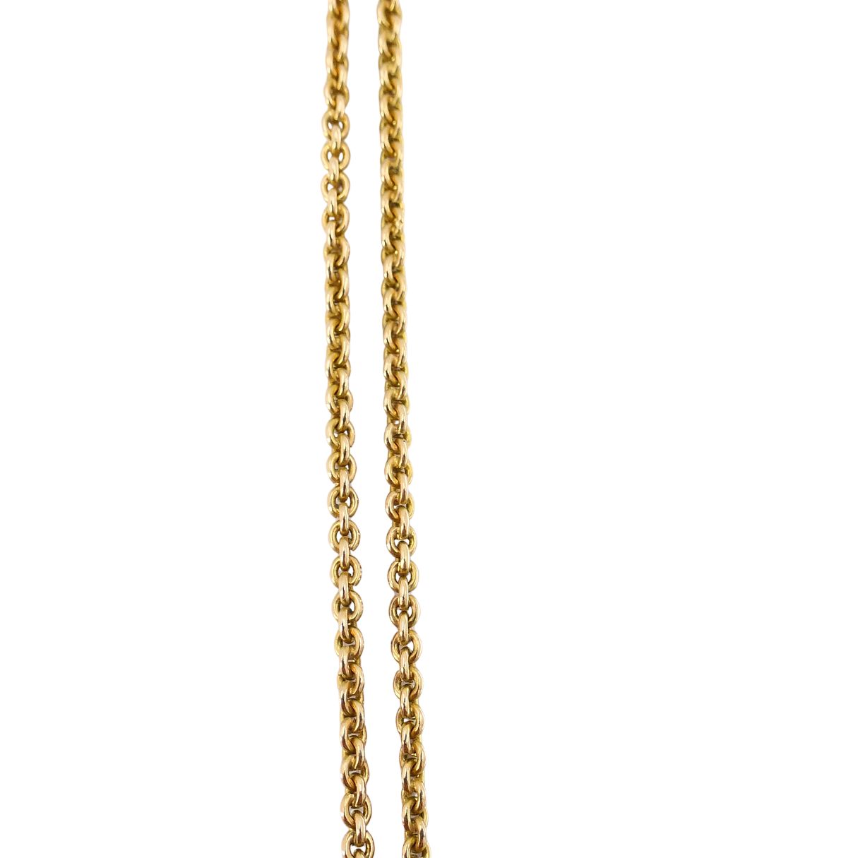The pendant measures 1 inch in length and 7/8 inch in width, suspended from a 16 3/4 inch round-link chain finished with an early-style spring ring clasp. Together, they weigh 10.33 grams in total.