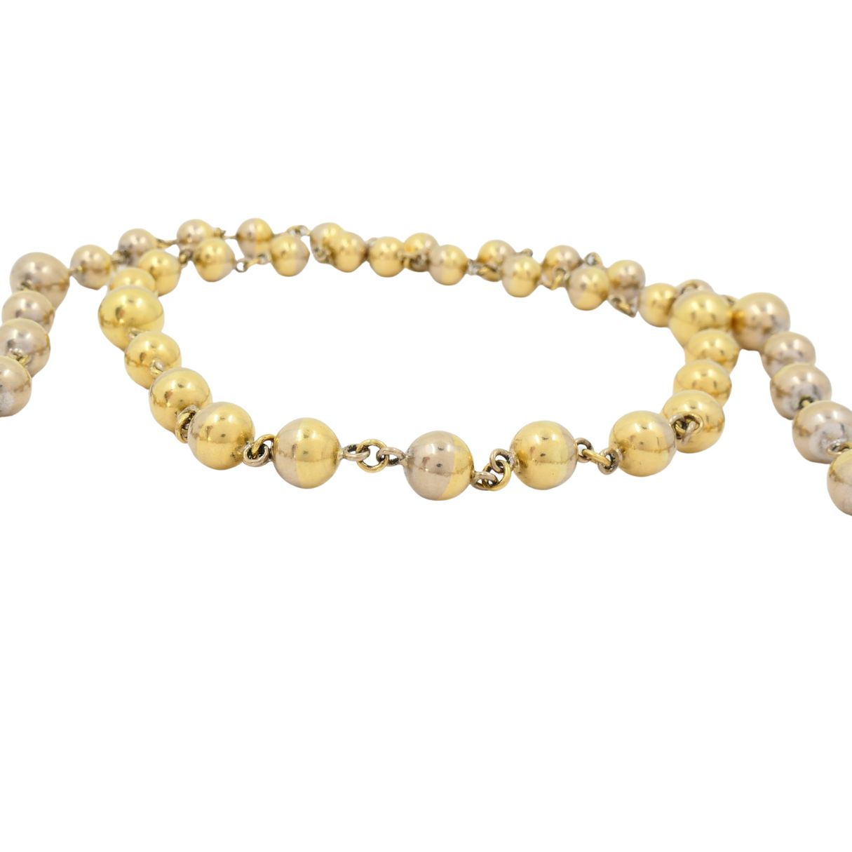 A two tone rosary necklace crafted in 18k gold, dating to the late twentieth century.