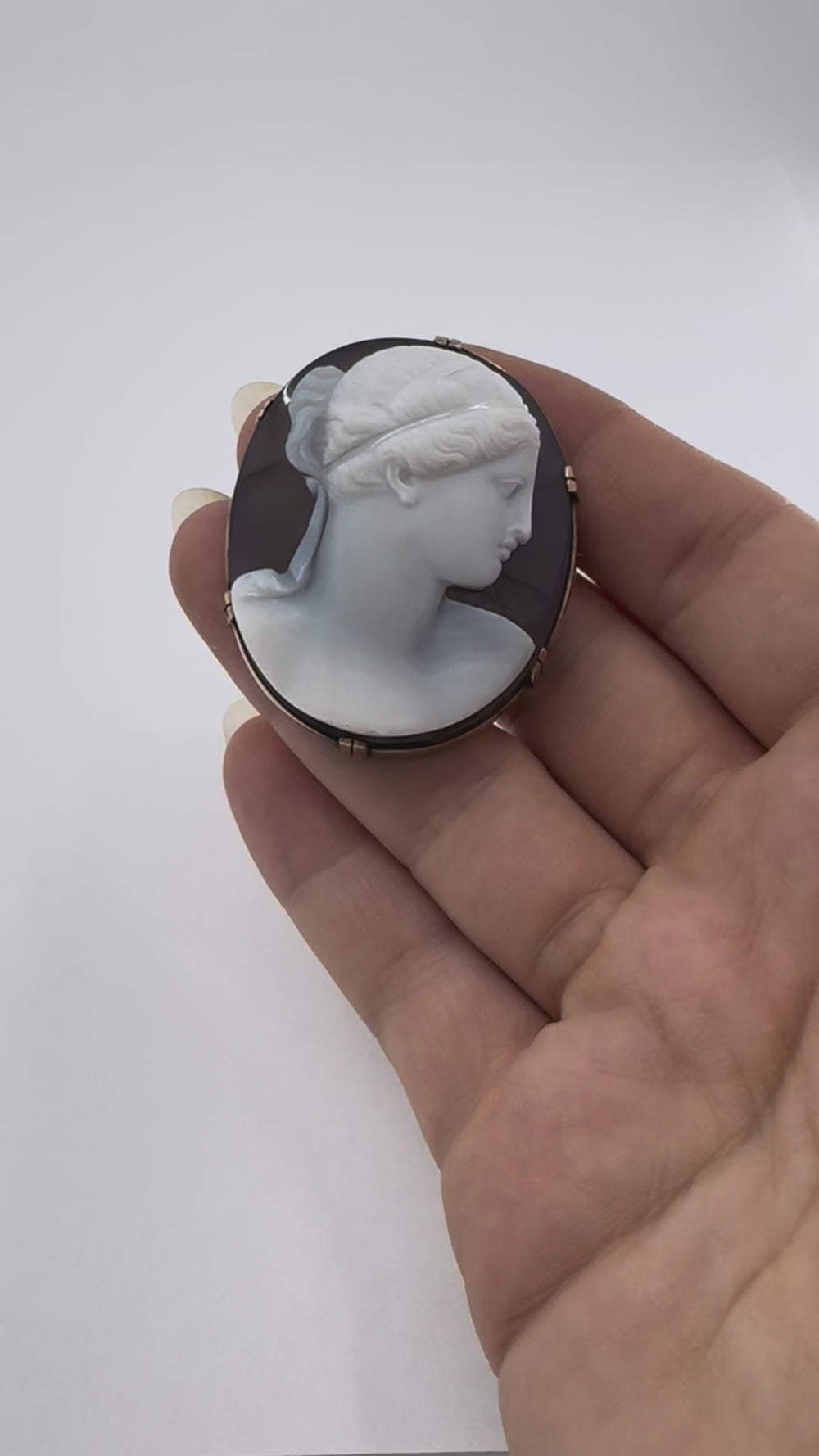 Antique 10K Gold Hardstone Agate Cameo Brooch Pin