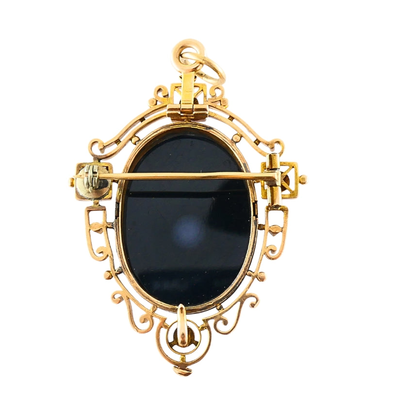Antique 12k Gold Agate Cameo Pendant Brooch Seed Pearls