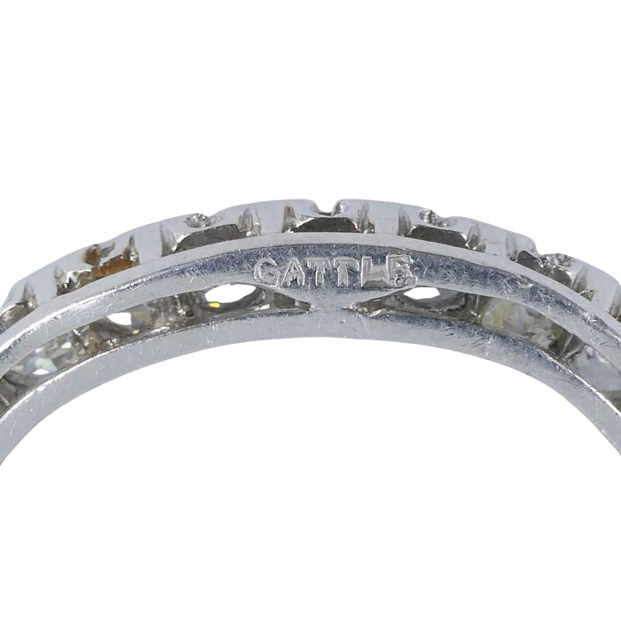 Made in New York in the early 20th century, this Edwardian brooch comes from the respected jeweler Gattle. The firm was known for precise hand fabrication and a meticulous approach to platinum jewelry. Their work was produced in small quantities, which makes signed pieces especially hard to find today.