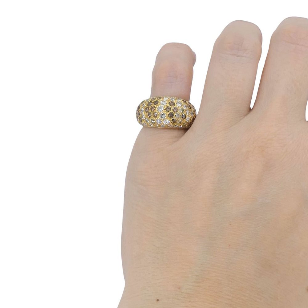 Vintage Cartier Sauvage 18k Gold White Brown Pavé Diamond Dome Ring