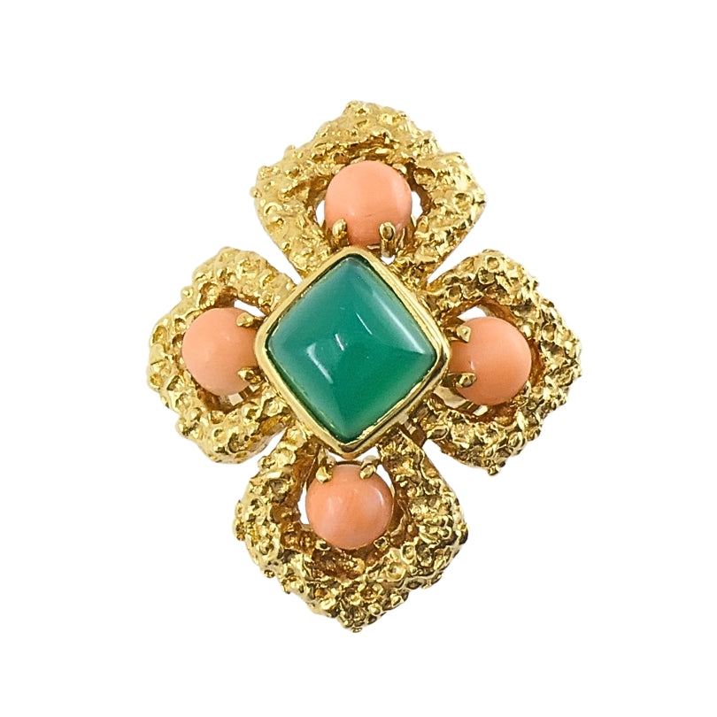 Vintage Van Cleef & Arpels 18k Gold Coral Chrysoprase Ring