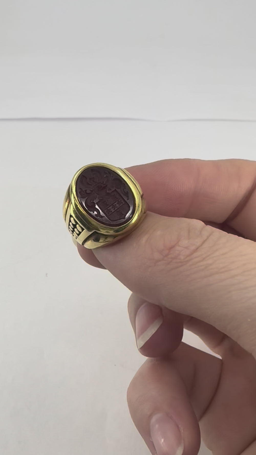 Vintage Kieselstein-Cord 18k Gold Carved Carnelian Intaglio Signet Ring