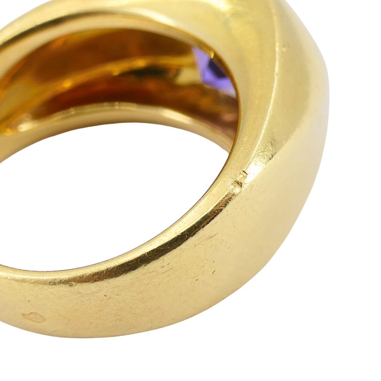 This piece reflects the refined craftsmanship of French jewelers from the 1980s–1990s, when bold geometry and rich color defined contemporary luxury. Its substantial form and vivid purple hue make it a striking yet timeless statement piece.