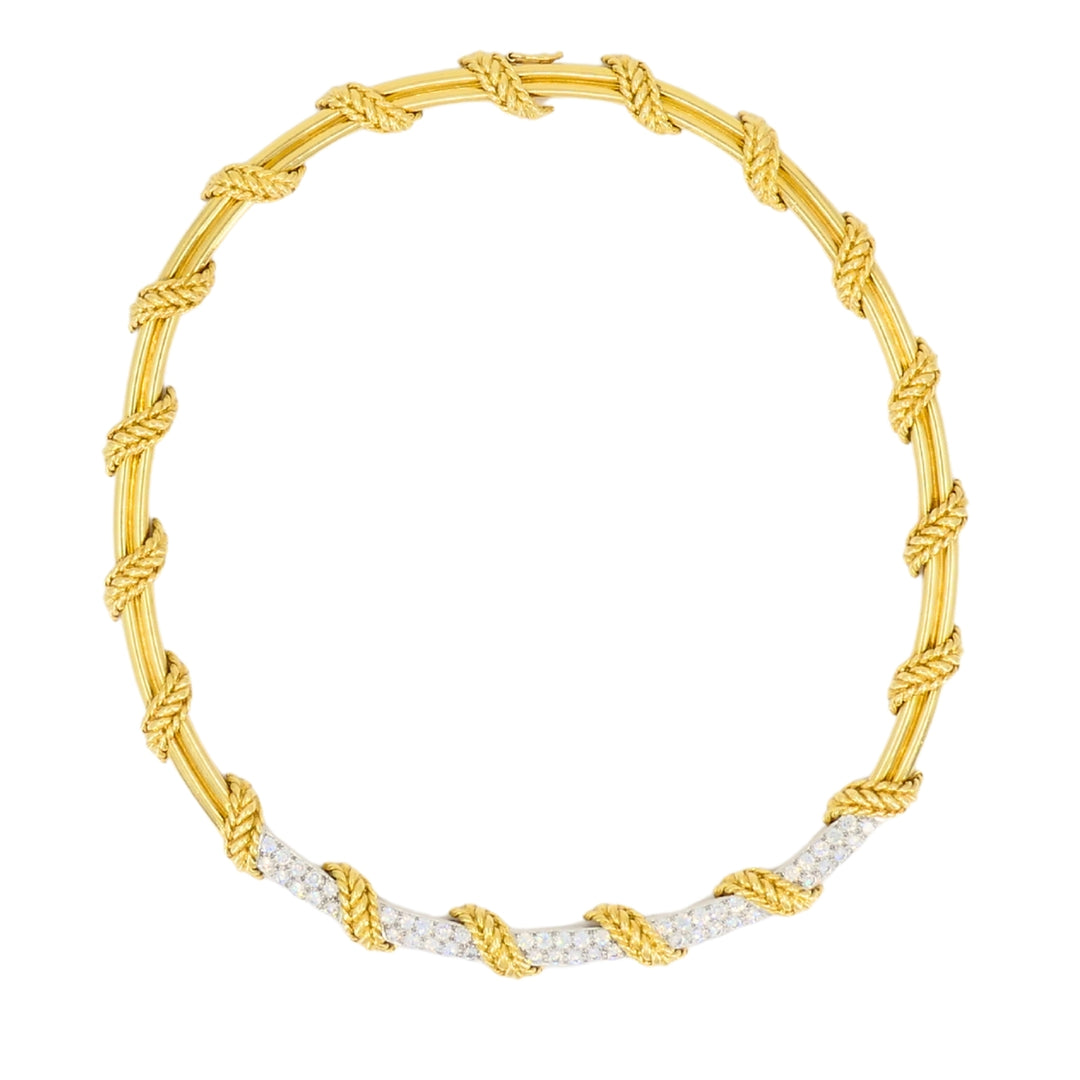 Tiffany & Co. 18k Gold Diamond Collar Necklace Rope Design