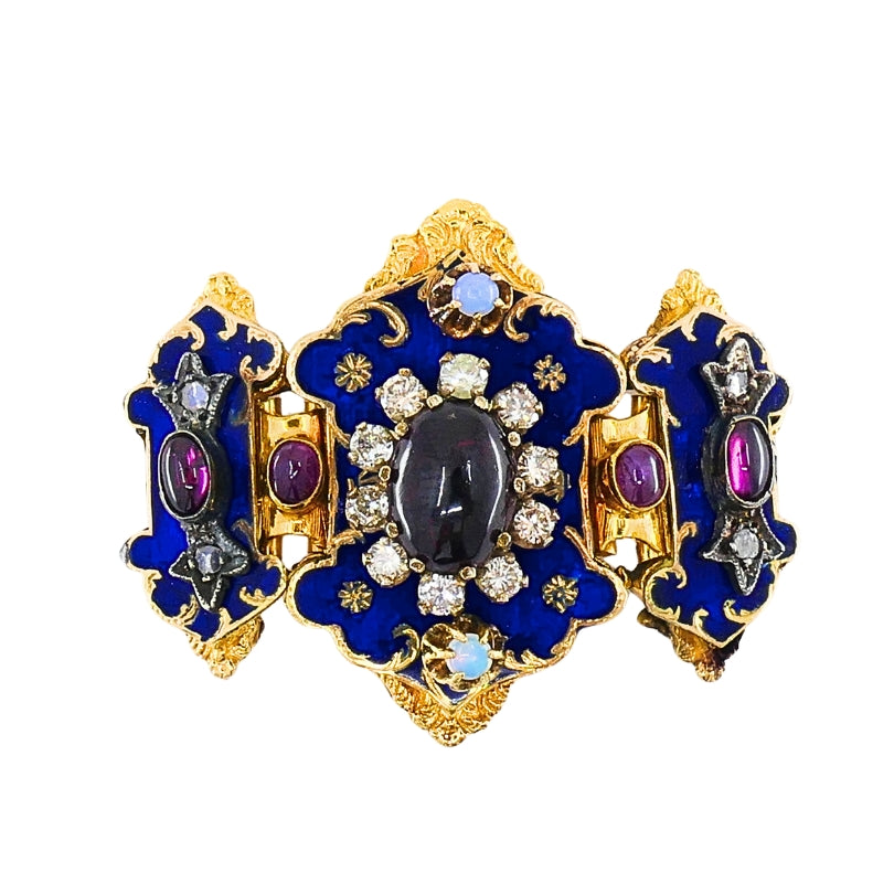 Antique Victorian 14K Gold Gemstone Enamel Buckle