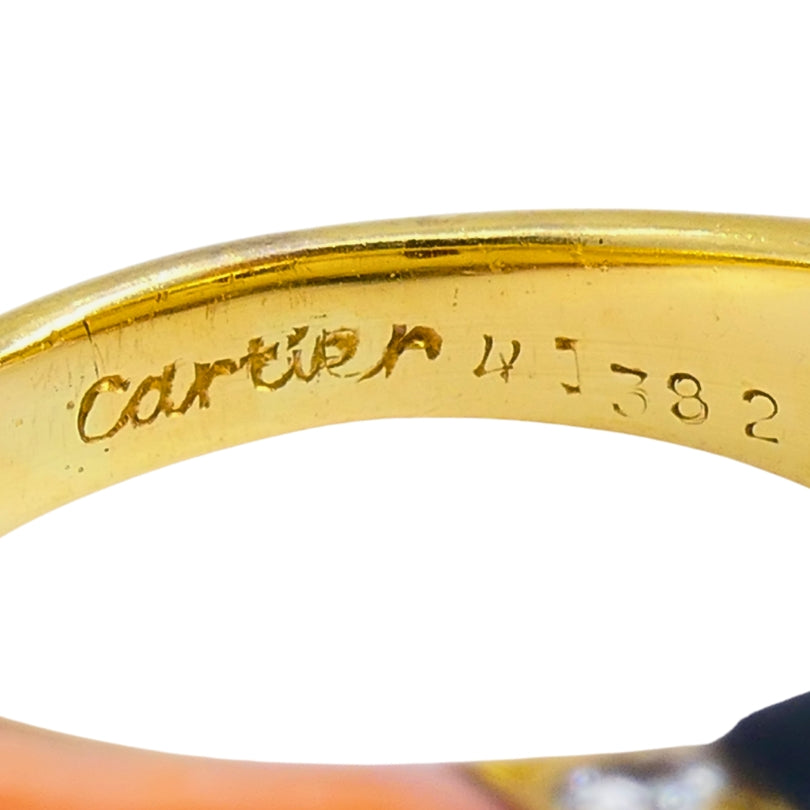 This signed Cartier coral, onyx, and diamond set showcases the House’s timeless aesthetic and the unmatched vintage jewels craftsmanship.
