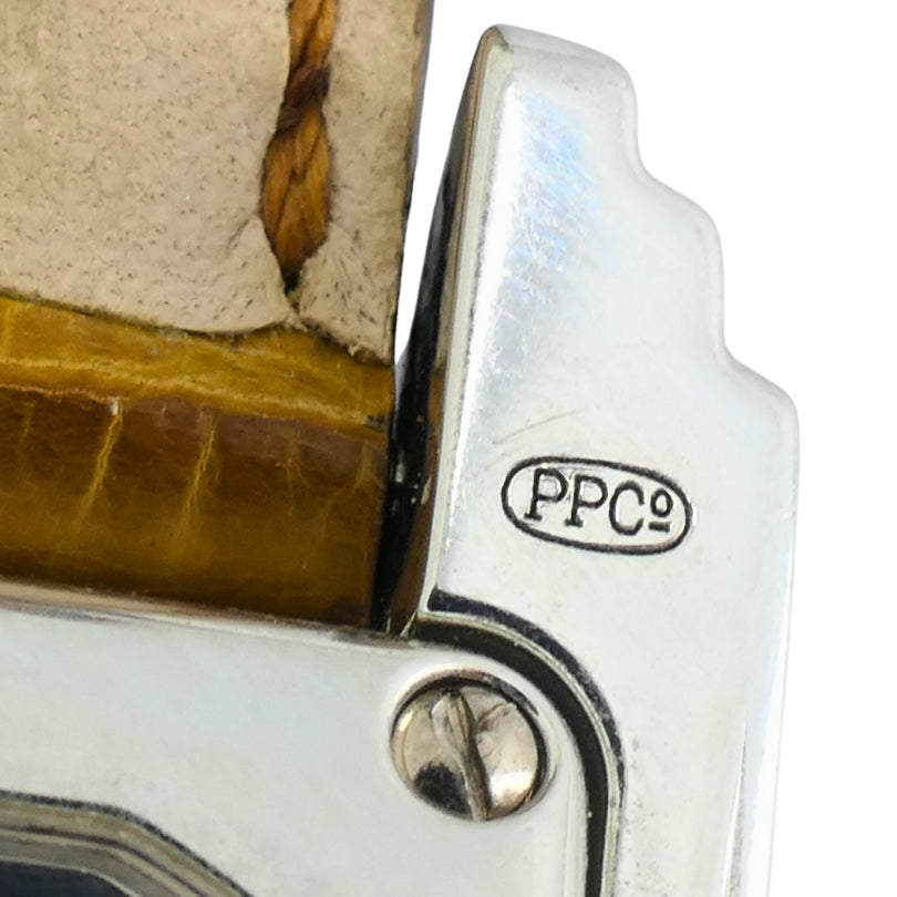 Original Patek Philippe black alligator leather strap 18 karat white gold clasp.