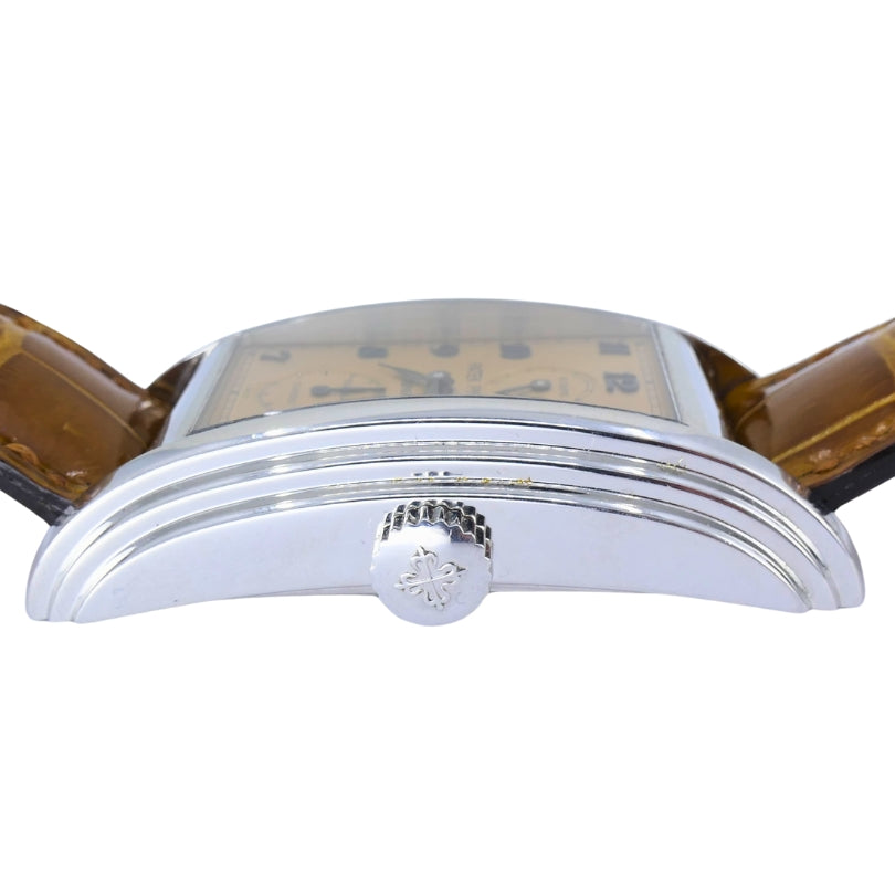 Rectangular 18 karat white gold case 30 x 35 (without lugs) mm, Swiss automatic movement. Subsidiary seconds subdial. Reference number 5109, Serial number 4295710, Movement number 1893389, Caliber 215, eighteen jewels. All the watch parts are original Patek Philippe.